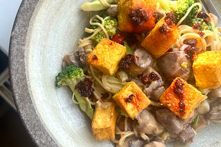 Peanut butter noodles with crunchy tofu