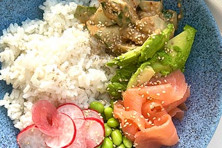 Smoked salmon sushi bowls and sticky sesame prawn noodle salad